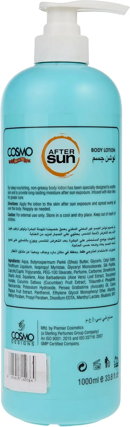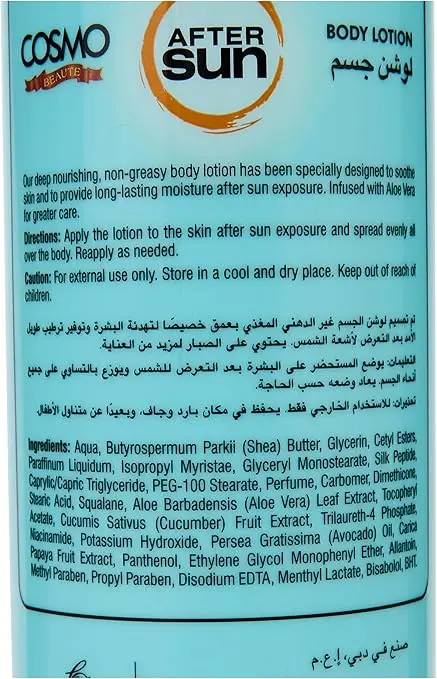 Just spent time in the sun and your skin feeling tight and dry? Give your skin the soothing relief it craves with CD COSMO DESIGNS After Sun Body Lotion. This specially formulated lotion is designed to calm and rehydrate sun-kissed skin, helping to restore lost moisture and prevent that uncomfortable dry, tight feeling. Enjoy refreshed, nourished skin that feels soft and comfortable again.