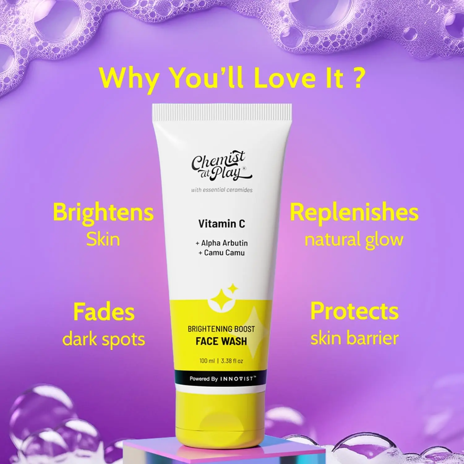 Dreaming of a brighter, more radiant complexion? Chemist at Play Brightening Boost Face Wash, supercharged with 30x more Vitamin C from Camu Camu, is here to illuminate your skin. This powerful face wash effectively cleans oil and dirt while actively fading dark spots and pigmentation, revealing a luminous glow. Say goodbye to dullness and hello to revitalized, radiant skin.