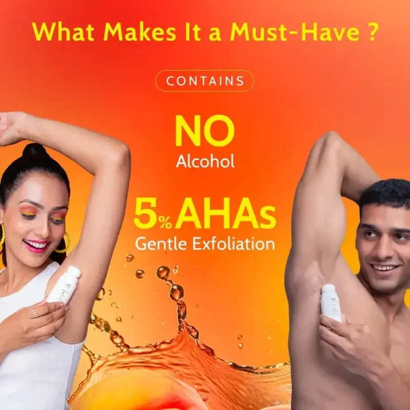 Want brighter underarms and a delightful scent to keep you fresh all day? Chemist at Play Underarm Roll-On with Peach fragrance is the perfect choice. This innovative roll-on features 5% AHA (Lactic and Mandelic Acids) to gently exfoliate, tackling dark spots and uneven skin tone for visibly brighter underarms.