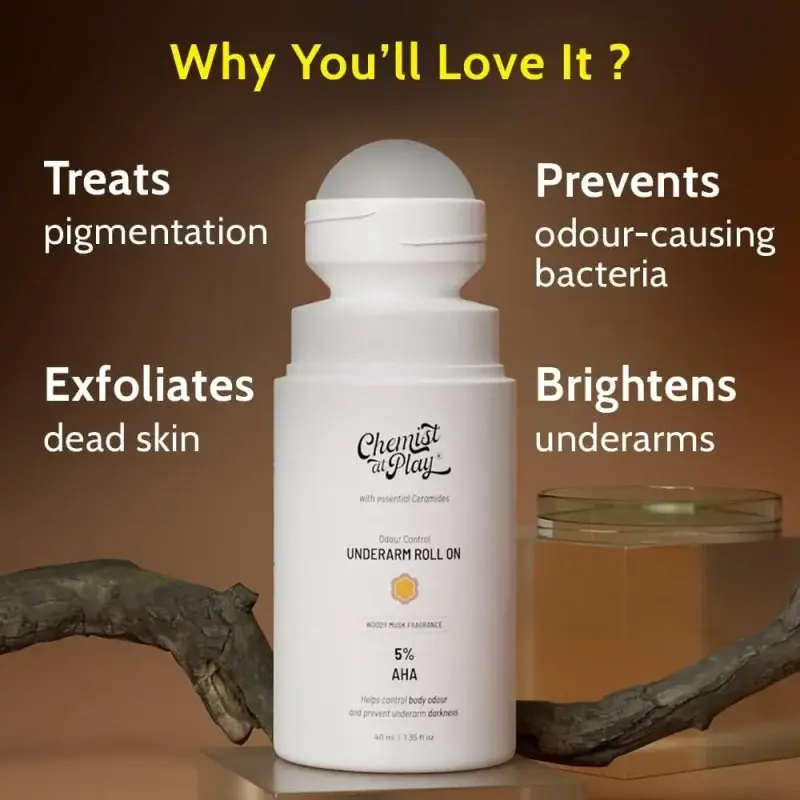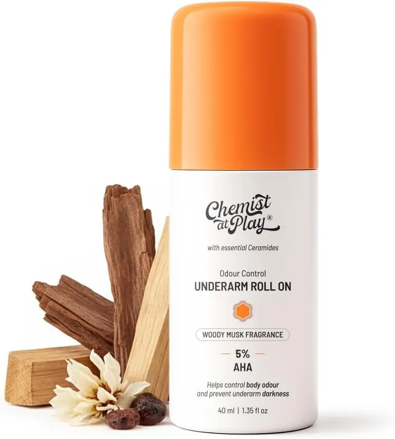 Looking for a way to brighten your underarms and enjoy a sophisticated scent that lasts? Chemist at Play Underarm Roll-On with Woody Musk fragrance is the answer. This advanced roll-on utilizes 5% AHA (Lactic and Mandelic Acids) to gently exfoliate, targeting dark spots and uneven skin tone for noticeably brighter underarms.