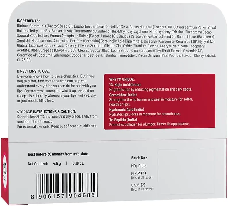 Are you struggling with chapped, dry lips or concerned about dark pigmentation? This Cherry Lip Balm is designed to be your ultimate lip care solution, giving you soft, smooth, and beautifully tinted lips.