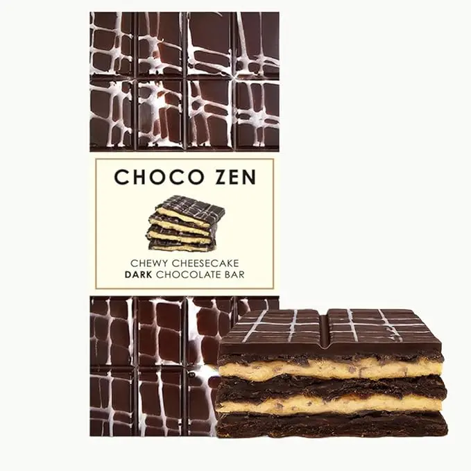 Indulge in a dessert-inspired chocolate experience with the Choco Zen Premium Dubai Dark Chocolate Bar, featuring a delightful Chewy Cheesecake flavor. This bar brings together the richness of dark chocolate with a unique chewy texture, offering a truly decadent treat. It’s a sophisticated indulgence for any moment.