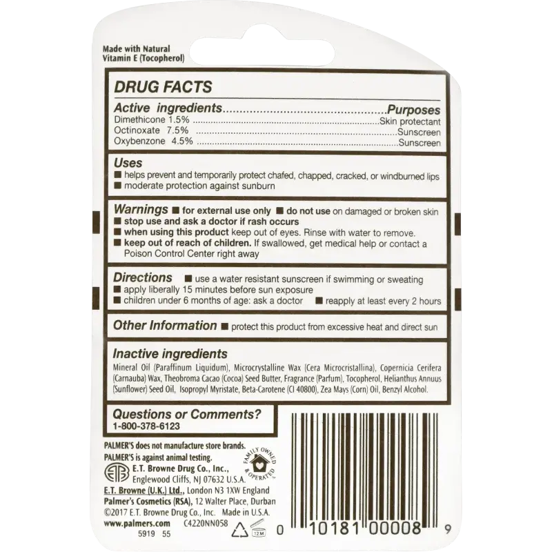 Are your lips often dry, chapped, or uncomfortable? Palmer’s Cocoa Butter Formula Lip Balm with SPF 15 is your daily defense against dryness and sun damage, keeping your lips protected and soft.