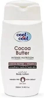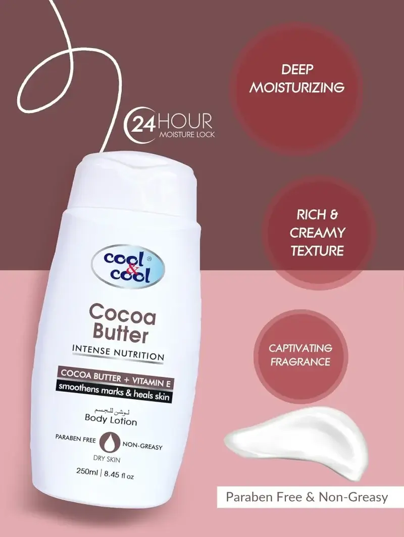 Cool & Cool Cocoa Butter Body Lotion- Moisturizing Formula with Cocoa Butter & Vitamin E, Non-Greasy & Paraben-Free, Smooths Marks and Heals Skin 250ml