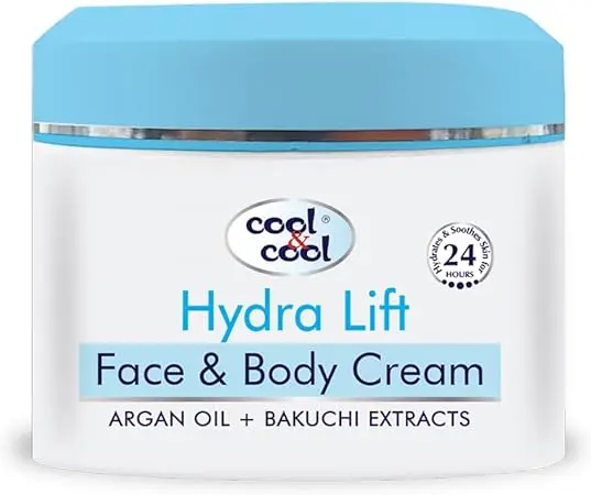 Do you wish for skin that feels firmer, looks smoother, and has a more even, radiant tone? Imagine skin that is deeply hydrated, feels refreshed, and boasts a visibly rejuvenated appearance. Our Cool & Cool Hydra Lift Body Cream, enriched with Argan Oil and Bakuchi Extracts, is formulated to deliver these benefits, elevating your skin’s health and appearance.