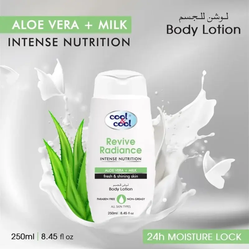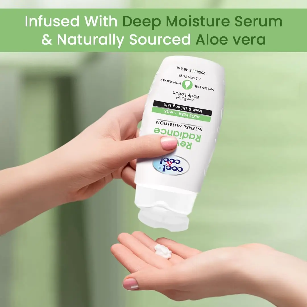 Do you struggle with skin that feels dull, dry, or lacks that fresh, healthy glow? Imagine skin that feels consistently revitalized, refreshed, and visibly shiny. Our Cool & Cool Revive Radiance Body Lotion, with Aloe Vera & Milk, is your answer to achieving that vibrant, hydrated look and feel, transforming your skin from tired to radiant.