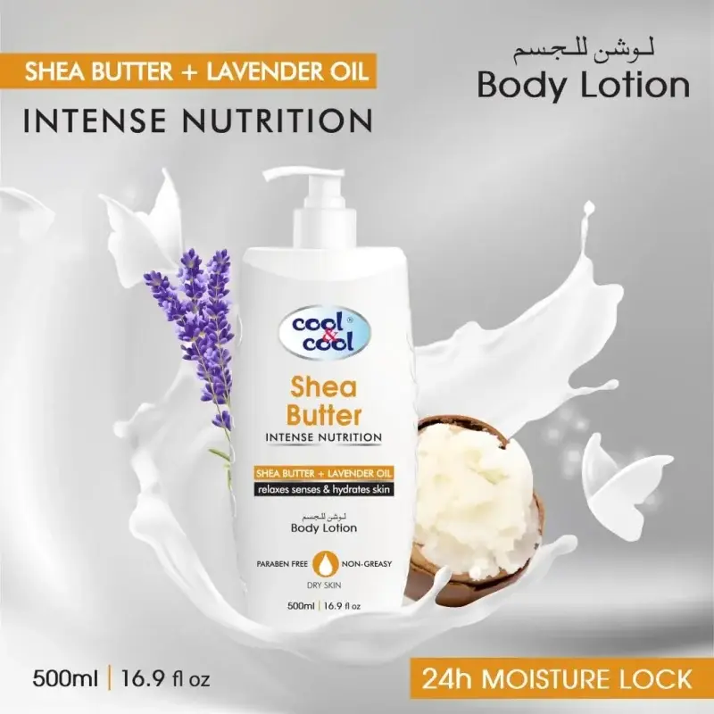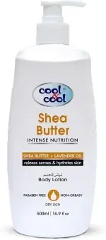 Cool & Cool Shea Butter Lotion for Dry Skin | Shea Butter & Lavender Oil, Non Greasy & Paraben Free, 500ml