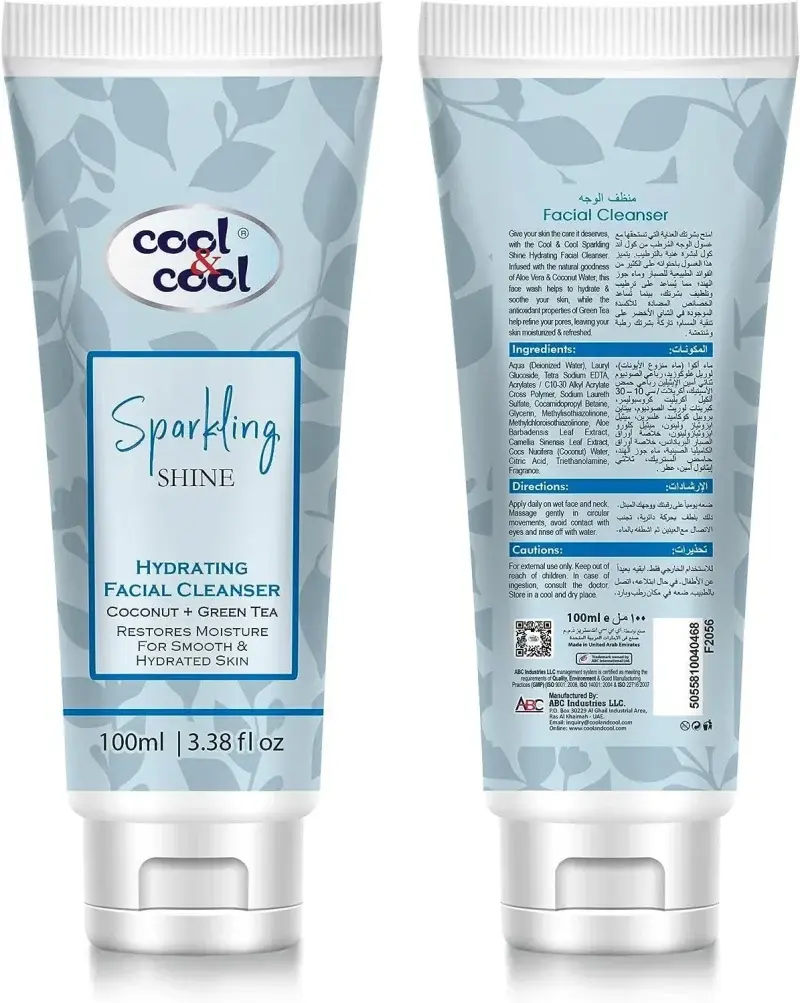Does your skin often feel dry, tight, or in need of a refreshing boost? Discover the soothing hydration of Cool & Cool Sparkling Shine Hydrating Facial Cleanser. Infused with the goodness of Aloe Vera and Coconut Water, this gentle cleanser deeply hydrates and replenishes your skin, leaving it feeling soft, smooth, and revitalized. Say goodbye to dryness and hello to a dewy, refreshed complexion.
