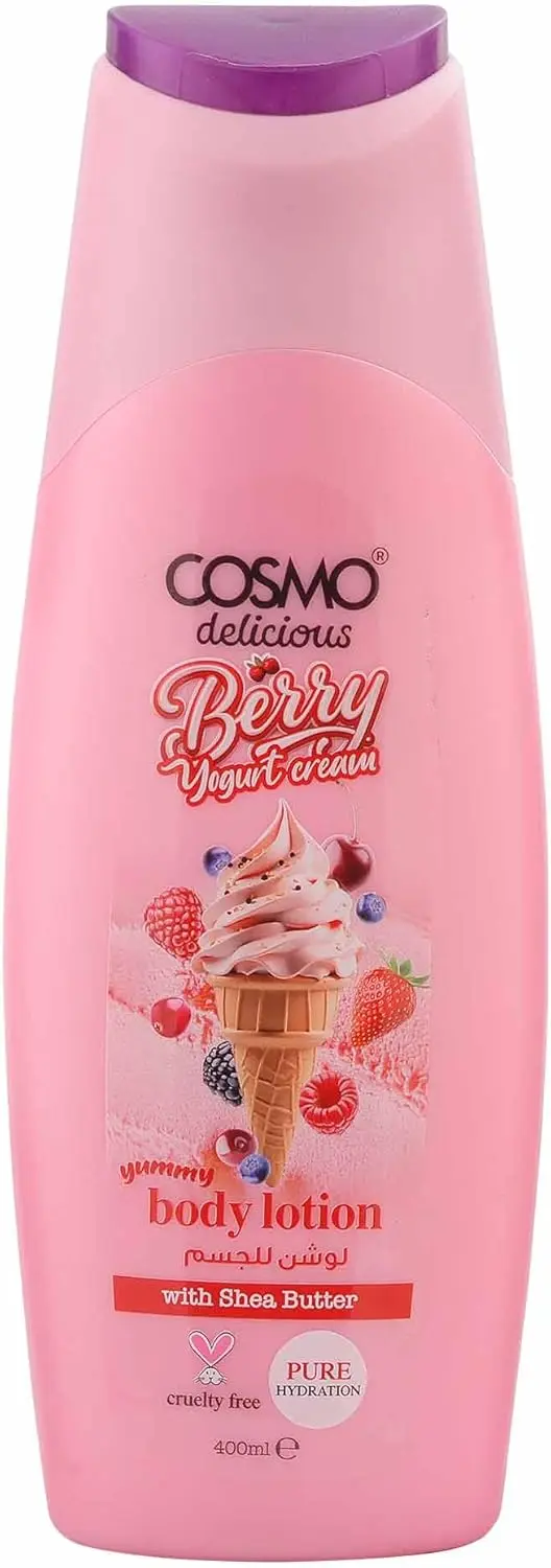Cosmo Delicious Berry Yogurt Cream With Shea Butter Pure Hydration Body Lotion, Hydrating & Nourishing, Non Greasy, Light Weight, Fast Absorbing Lotions, For All Skin Types, Fruity Yogurt Scent 400ml