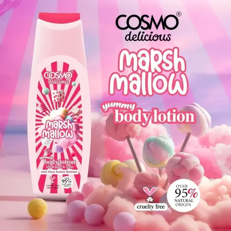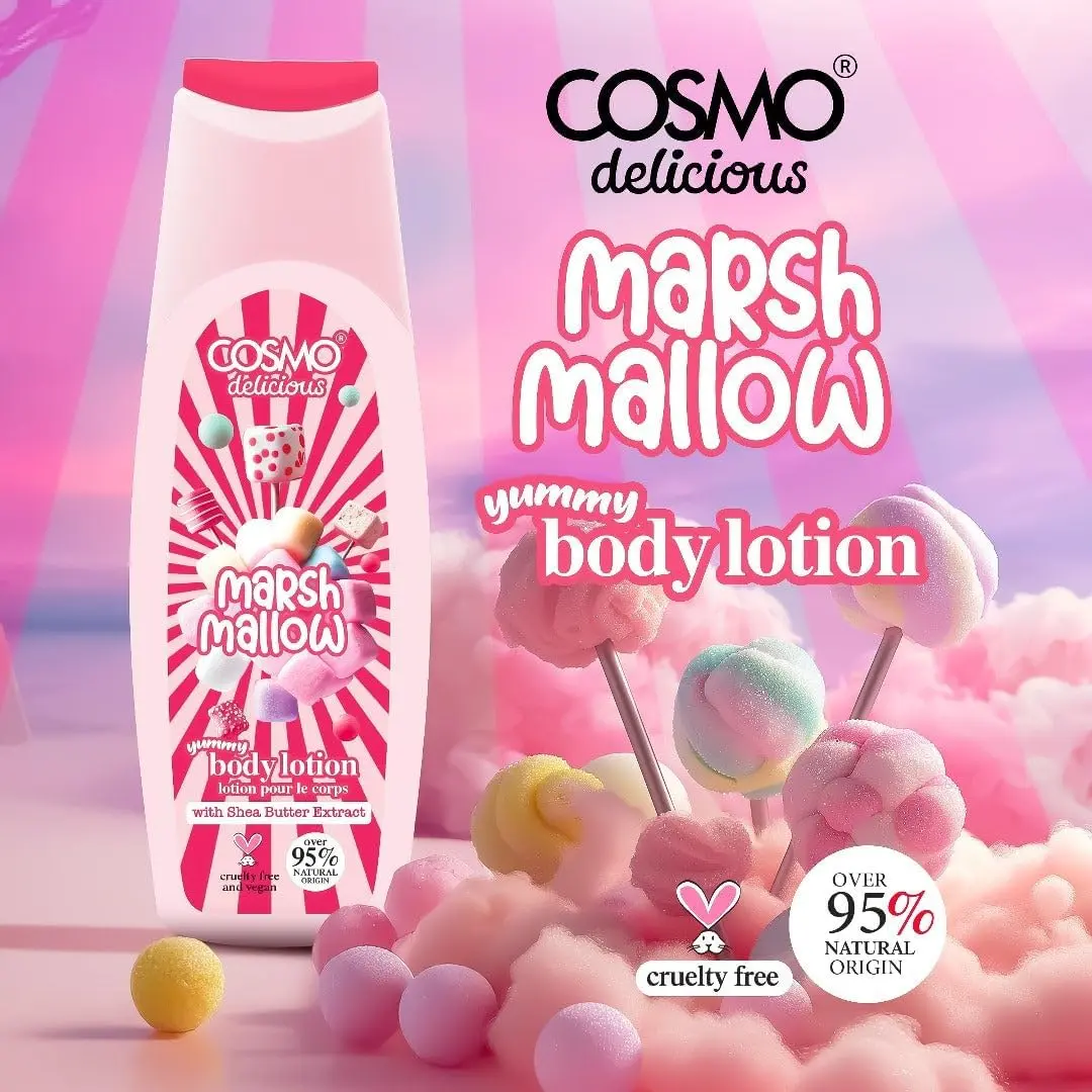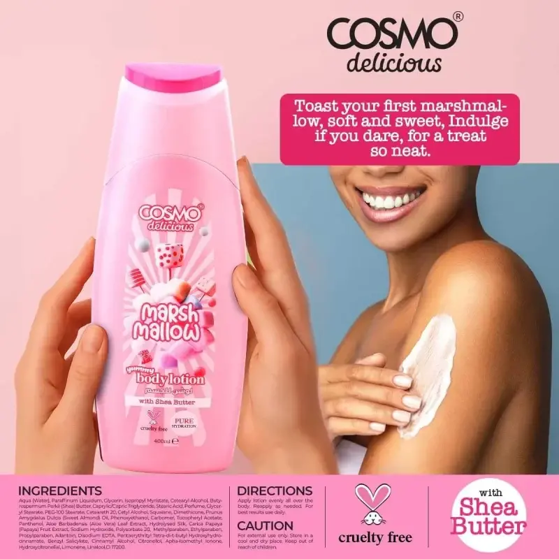 Cosmo Delicious Sweet Marsh Mallow With Shea Butter Pure Hydration Body Lotion, Hydrating & Nourishing, Non Greasy, Light Weight, Fast Absorbing Lotions, For All Skin Types, Marshmallow Scent 400ml