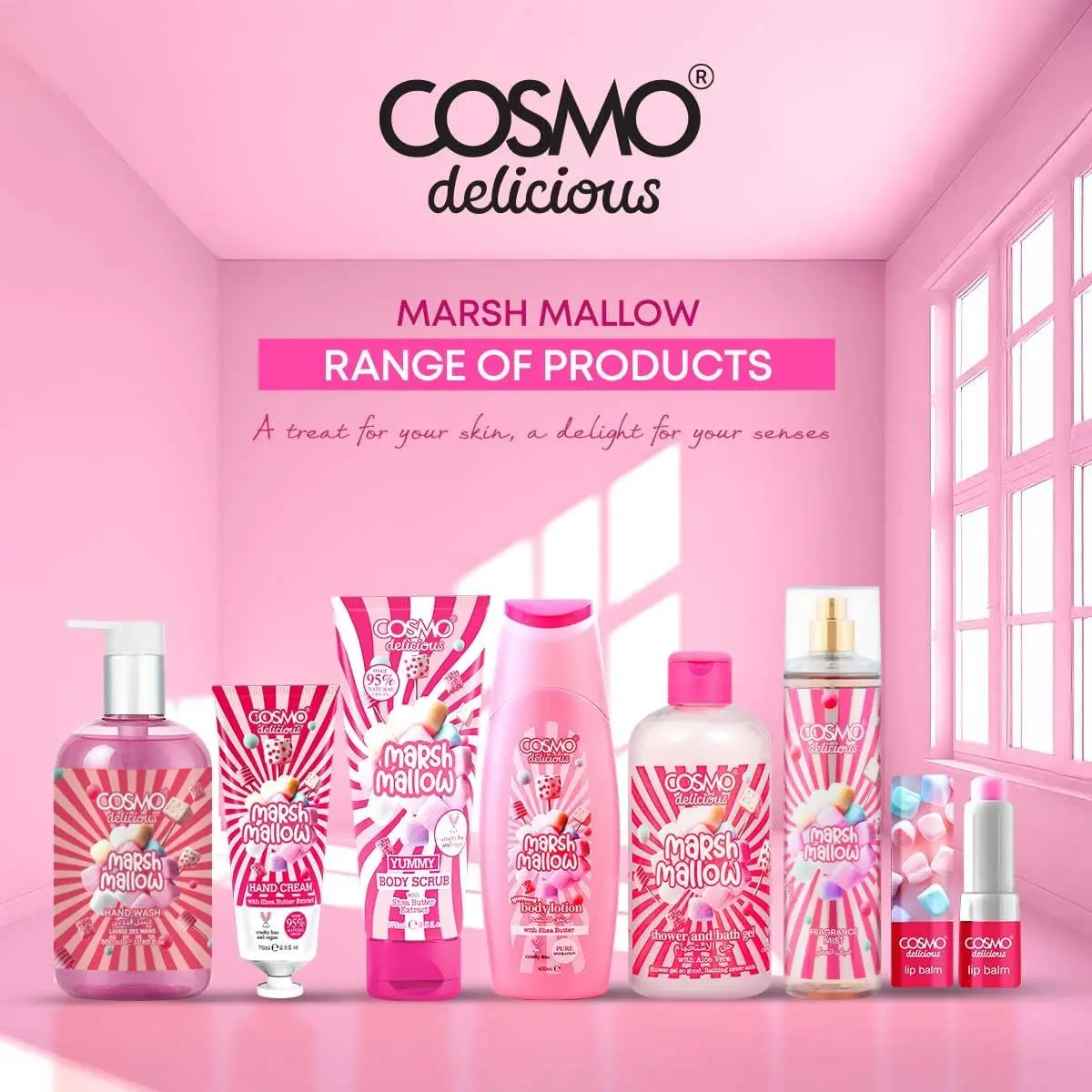 Dreaming of soft, irresistibly smooth skin with a delightful scent? The Cosmo Delicious Sweet Marsh Mallow Body Lotion is your perfect treat. This whipped body moisturizer provides pure hydration, transforming dry skin into a silky-smooth canvas.