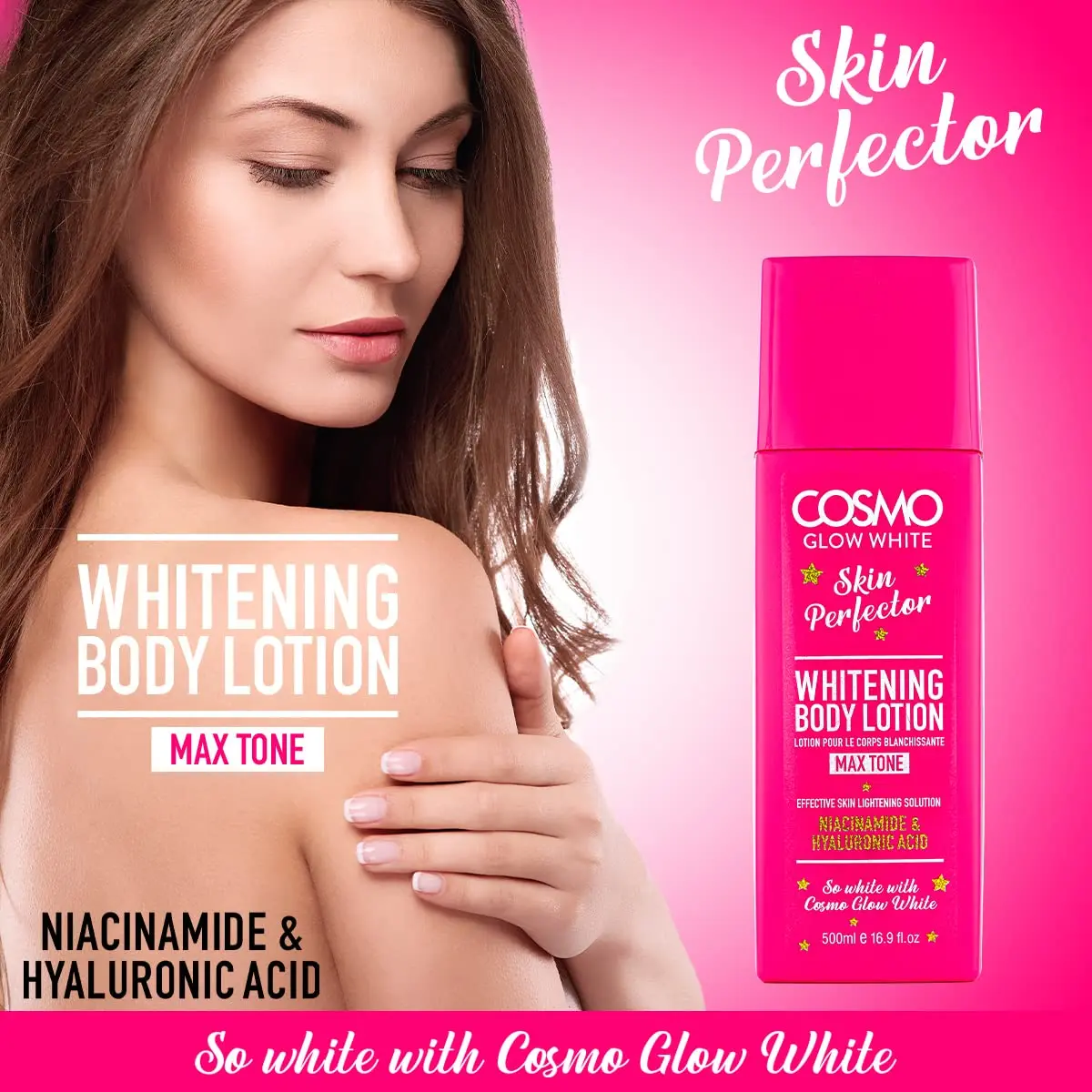 Dreaming of a brighter, more even skin tone? Cosmo Glow White Skin Perfector Whitening Body Lotion is your key to achieving that radiant complexion. This specialized lotion is formulated to effectively lighten and even out your skin tone, diminish the appearance of dark spots, and enhance your skin’s natural radiance. Say goodbye to unevenness and hello to luminous, flawless-looking skin.