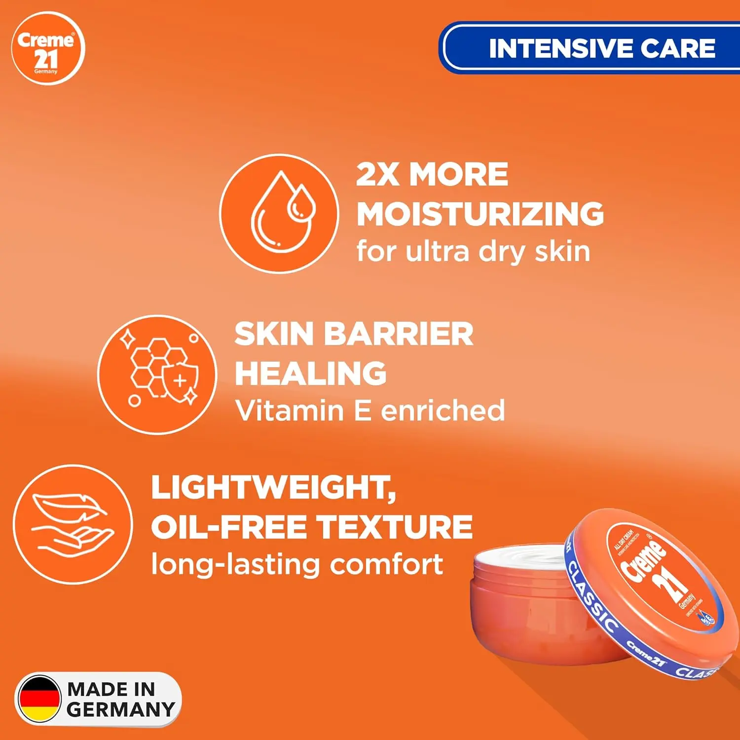 Experience the power of 24-hour intensive moisturization. Formulated with nourishing Vitamin E and Pro-Vitamin B5, this cream not only hydrates deeply but also supports your skin’s natural regeneration process. It works to repair dry to ultra-dry skin, strengthening its moisture barrier and leaving it feeling softer, smoother, and revitalized.