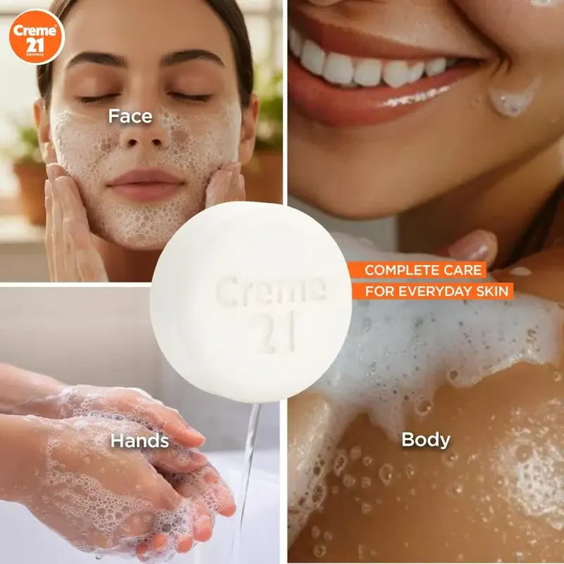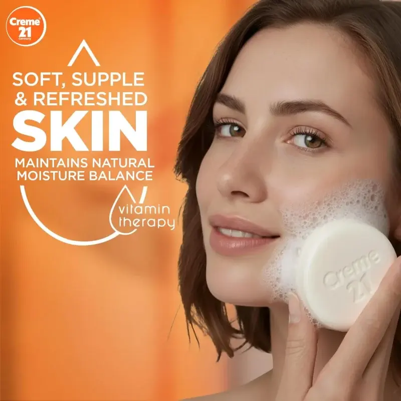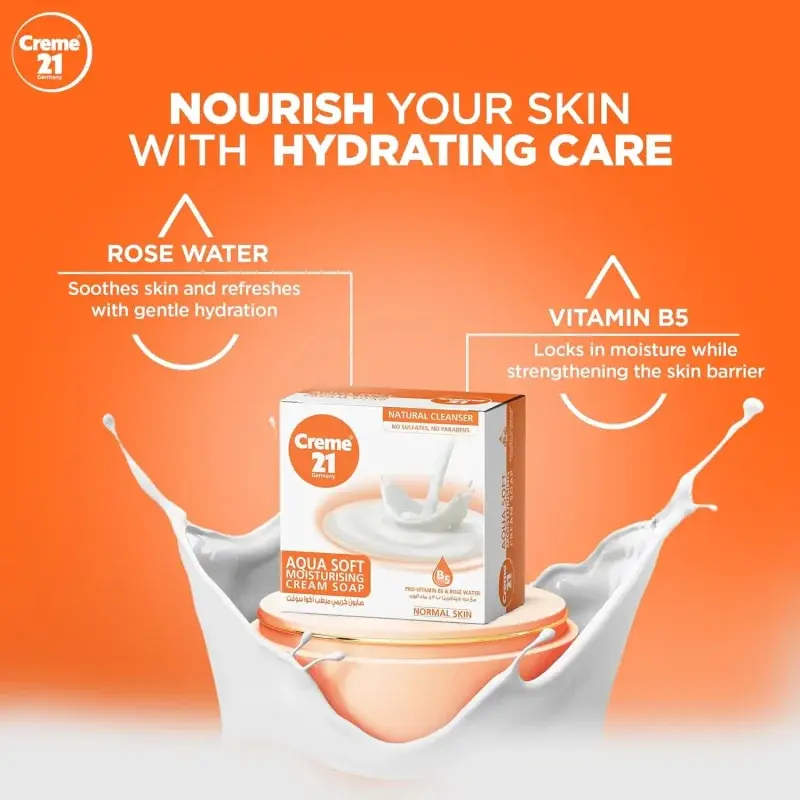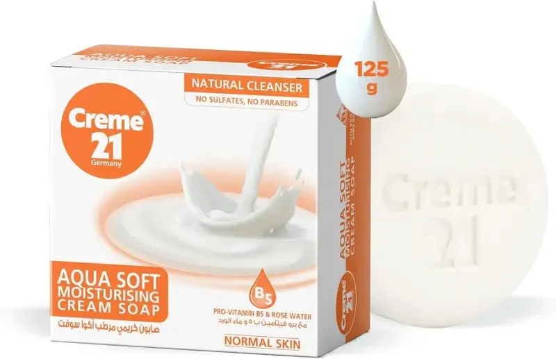 Creme 21 Aqua Soft Moisturizing Cream Soap combines a gentle cleansing formula to give you softer, smoother and more glowing skin with every shower you take. What makes this soap different is its powerful ingredients. The soap is infused with Pro-Vitamin B5 that hydrates and plumps the skin keeping it young and Rose Water which helps balance skin’s natural oil and leaves the skin hydrated. This formula gently cleanse your skin and help retain its natural moisture rather than stripping it away. Its moisturizing and nourishing formula leaves skin nourished all day long. The Creme 21 Aqua Soft Moisturizing Cream Soap is a natural cleanser and is mild on the skin making it suitable for all skin types. It has gentle cleansers which are suitable for dry and sensitive skin also. It does not include any harsh chemicals like sulphate and paraben. This 100% creamy care soap is for the whole family. For best results, lather up your Creme 21 Aqua Soft Moisturizing Cream Soap and massage the smooth, creamy lather over your body before rinsing thoroughly.