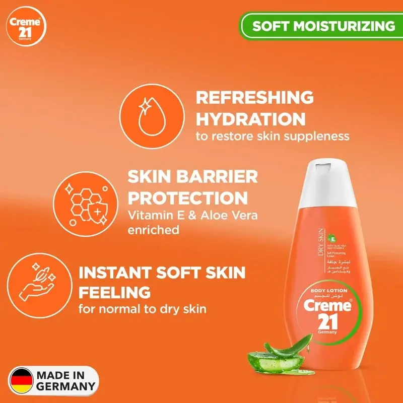 Give your body the ultimate gift of love and care by using the Creme 21 Dry Skin Lotion. Curated especially for people with dry skin by combining two powerful ingredients, like Vitamin E to give intense moisturization and keep the skin soft and Aloe Vera to moisturize and lighten blemishes on the skin, the Creme 21 lotion is a product that you will fall in love with after just one use. This lightweight, non-sticky and fast-absorbing moisturizer penetrates deep into the skin and provides deep nourishment for dry skin while also restoring the skin’s natural moisture and glow. The lotion is also free of harmful chemicals such as sulphate, paraben, silicone, paraffin and micro plastics. For best results, just squeeze a small amount of the Creme 21 Dry Skin Lotion onto your palm and apply it evenly all over your body until fully absorbed. Make sure to use it regularly.