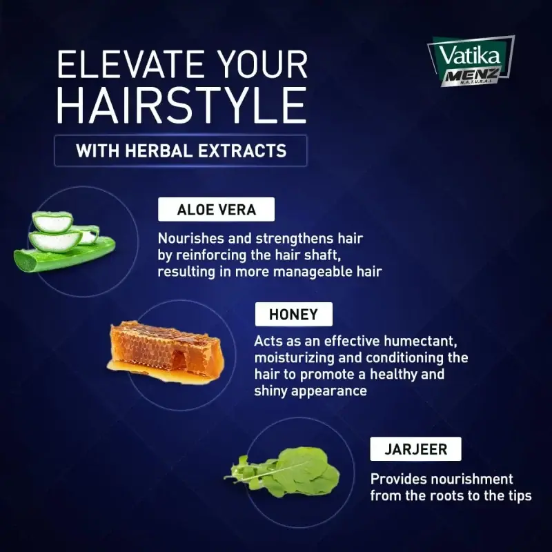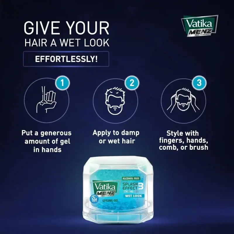Want that effortlessly cool, ‘just out of the shower’ wet look that lasts all day? Vatika Naturals Wet Look Styling Hair Gel is here to give you that style statement. Enriched with the nourishing goodness of Honey, Aloe Vera, and Jarjeer, this gel not only provides a fantastic hold but also strengthens, moisturizes, and nourishes your hair, keeping it looking healthy and vibrant.