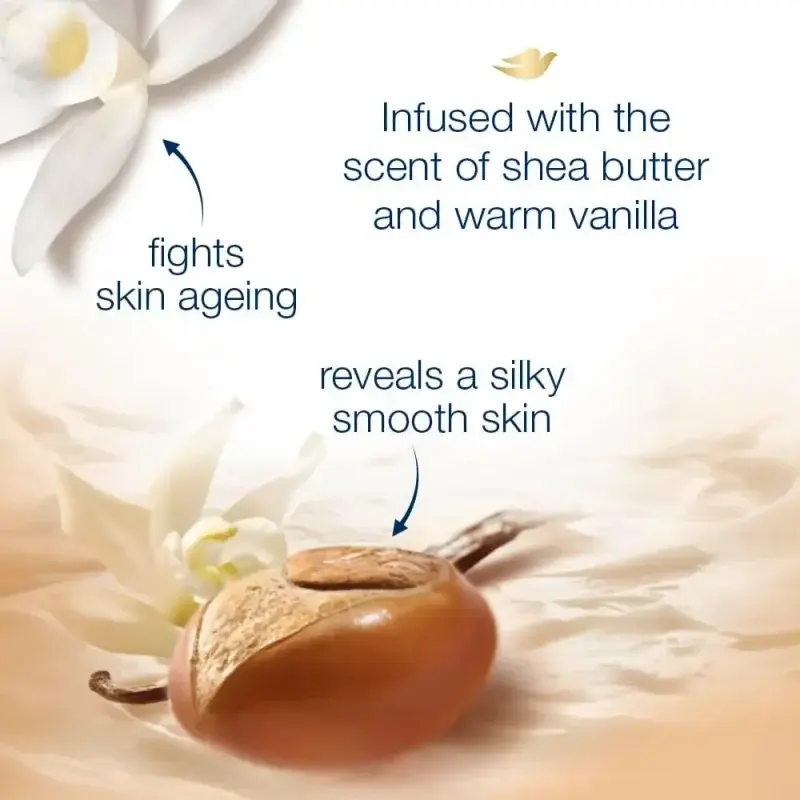 Tired of dry skin that feels uncomfortable after showering? Discover the Dove Shea Butter & Vanilla Relaxing Care Nourishing Body Wash, your all-in-one solution for cleansing and moisturizing. This unique body wash effectively cleanses your skin while deeply nourishing it, eliminating the need for separate moisturizing steps. Imagine skin that feels soft, smooth, and wonderfully hydrated right after your shower.