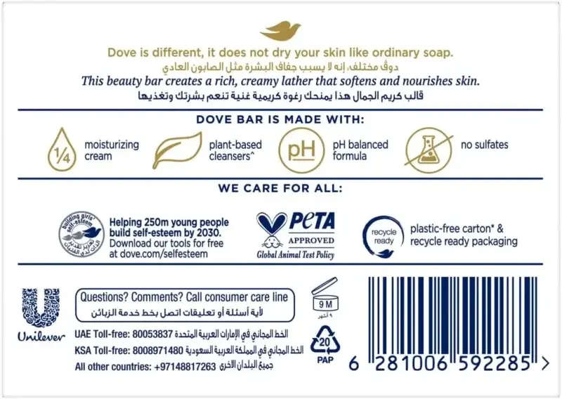 Immerse yourself in the warm, comforting scent of coconut milk blended with delicate jasmine petals. This delightful fragrance creates a truly pampering experience. Enriched with Dove’s signature ¼ moisturizing cream, it works to replenish your skin’s natural moisture, leaving it feeling exceptionally soft, smooth, and beautifully cared for.
