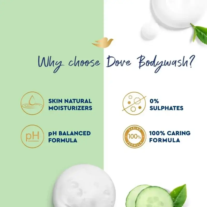 Is your skin feeling tired and in need of a refreshing boost? Dove Refreshing Body Wash, with the invigorating scents of Cucumber and Green Tea, is your answer to instantly softer, revitalized skin. This dermatologist-recommended body wash provides a caring ritual that nourishes and renews your skin with every shower.