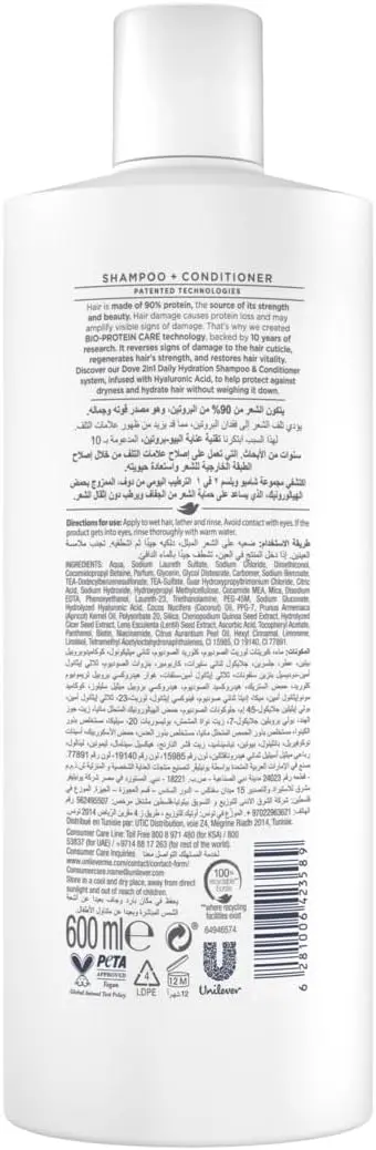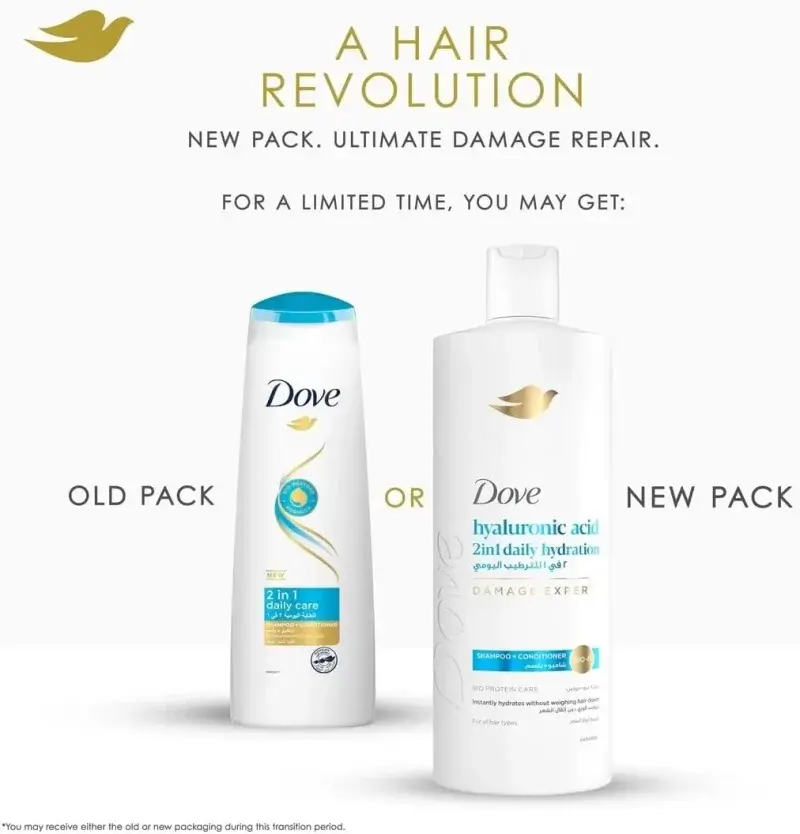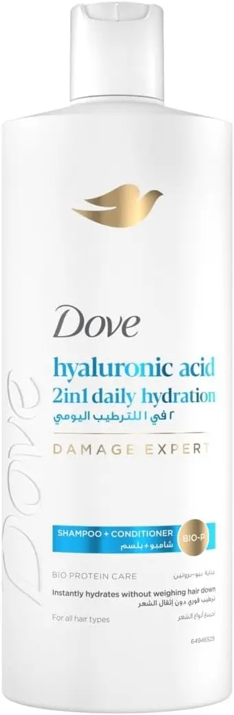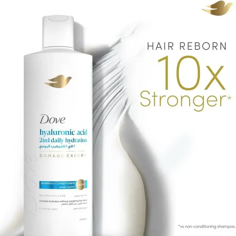 Infused with Hyaluronic Acid, this innovative 2-in-1 product draws moisture into your hair and helps lock it in, combating dryness and restoring vitality. Coupled with Dove’s Bio-Protein Care Technology, it works to reverse damage, strengthen hair, and enhance its natural shine, making your routine quicker and your hair healthier.