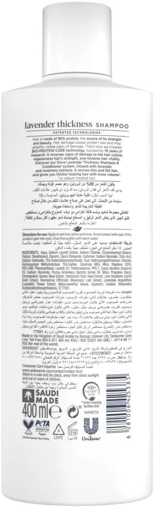 Infused with natural Lavender and Rosemary extracts, this shampoo not only cleanses but also invigorates your scalp and hair. Combined with Dove’s Bio-Protein Care Technology, it works to reverse damage, strengthen hair fibers, and restore vitality, ensuring your hair looks fuller and feels healthier with every wash.