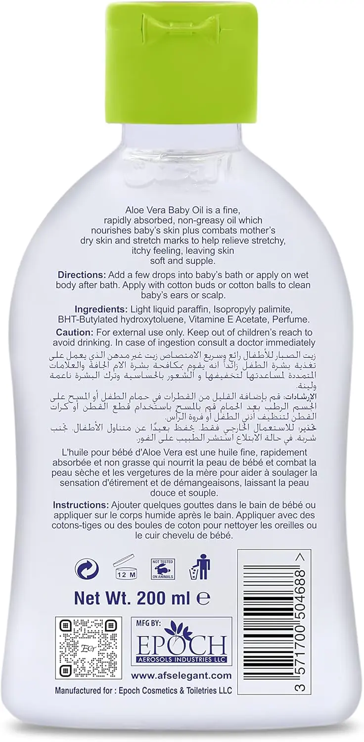 Does your baby’s skin need extra care and hydration? Our Elegant Baby Oil with Aloe Vera is here to provide gentle nourishment and lasting moisture. Enriched with soothing Aloe Vera and protective Vitamin E, this premium oil is designed to deeply hydrate and protect your baby’s delicate skin, helping to prevent dryness and maintain its natural softness. Imagine your baby’s skin feeling incredibly smooth, calm, and healthy after every application.