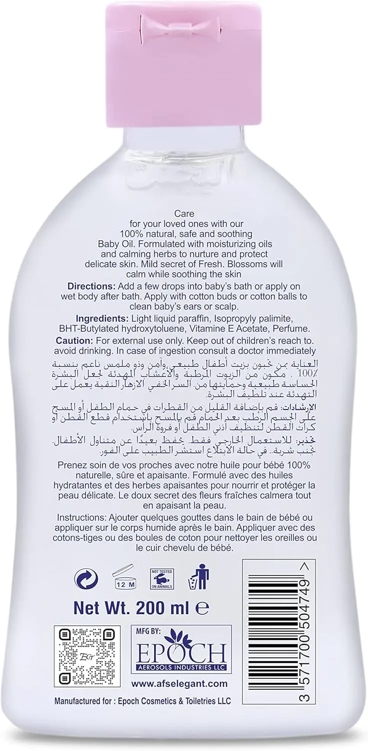 We understand that your baby’s skin is precious. That’s why our premium baby oil is proven to be exceptionally gentle and mild, making it perfect for even the most sensitive skin. The lightly scented formula adds a touch of comfort without overwhelming your little one.