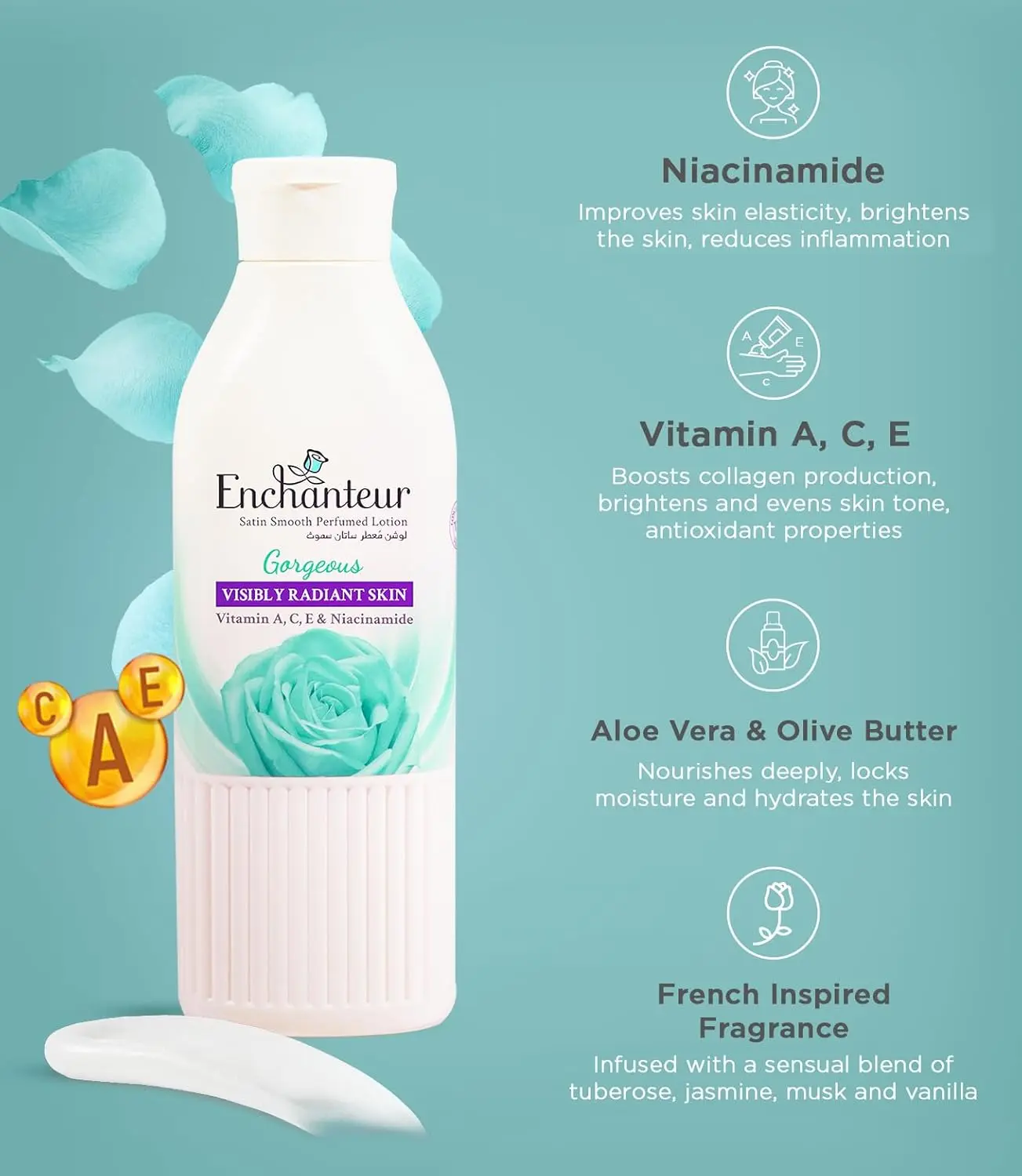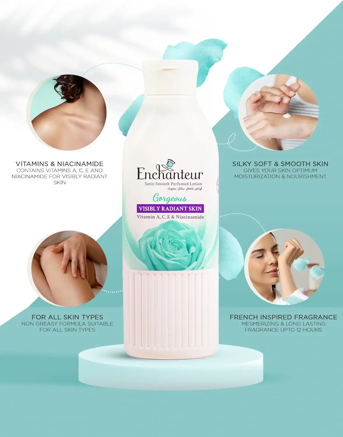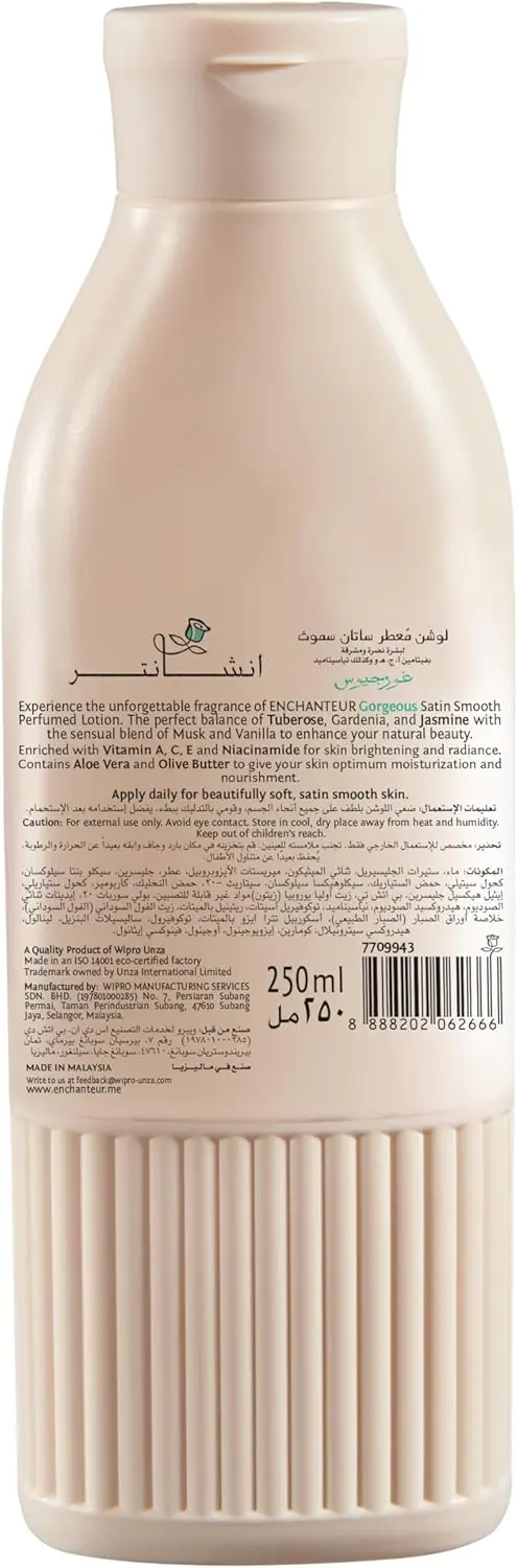 Is your skin feeling dry and lacking that soft, touchable smoothness? Enchanteur Satin Smooth Perfumed Lotion in Gorgeous is your daily indulgence. This luxurious lotion deeply nourishes your skin, leaving it feeling incredibly silky smooth and visibly radiant. Its lightweight, non-greasy formula absorbs quickly, making it perfect for everyday use without any sticky residue.