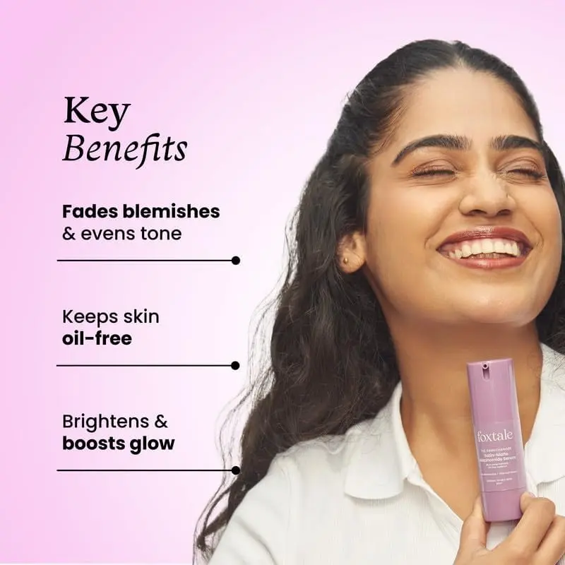 Tired of persistent blemishes, acne marks, and oily skin that makes you feel self-conscious? Achieving a clear, bright, and shine-free complexion can seem difficult. Foxtale 5% Niacinamide Face Serum is your solution for visibly clearer and brighter skin.