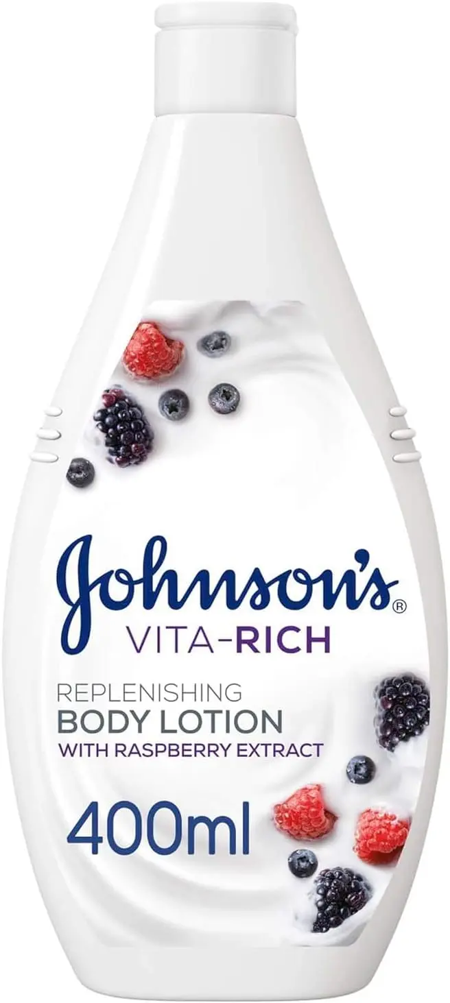 Johnson's Body Lotion - Vita-Rich Replenishing Raspberry Extract, Single Bottle, Moisturising and Nourishing Formula for Dry Skin, Enriched with Natural Antioxidants and Vitamins 400ML