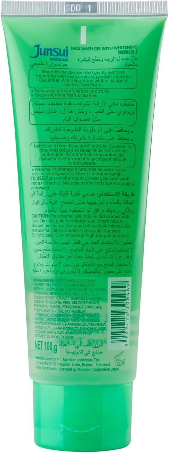 Is your skin feeling congested and in need of a gentle yet thorough cleanse? Discover the purifying power of Junsui Naturals Face Wash Gel Cucumber. This water-based cleanser is expertly formulated to gently lift away impurities while providing deep cleansing action, leaving your skin feeling incredibly clean and refreshed. Transform your skin from feeling clogged and dull to clear, calm, and revitalized.