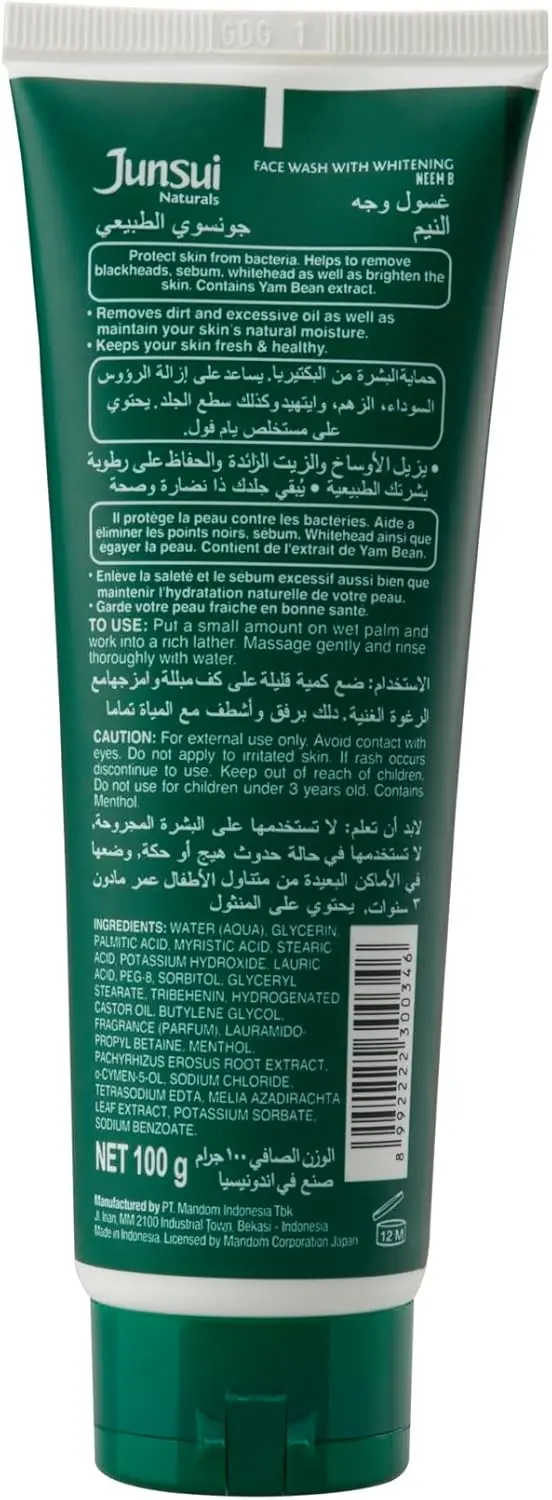 Are you looking for a face wash that tackles impurities and leaves your skin feeling truly clean and refreshed? Junsui Naturals Face Wash Neem is your answer. This powerful yet gentle foaming scrub is designed to protect your skin from bacteria, helping to clear away blackheads, whiteheads, and excess oil. Experience a deep cleanse that leaves your complexion looking brighter and feeling healthier.