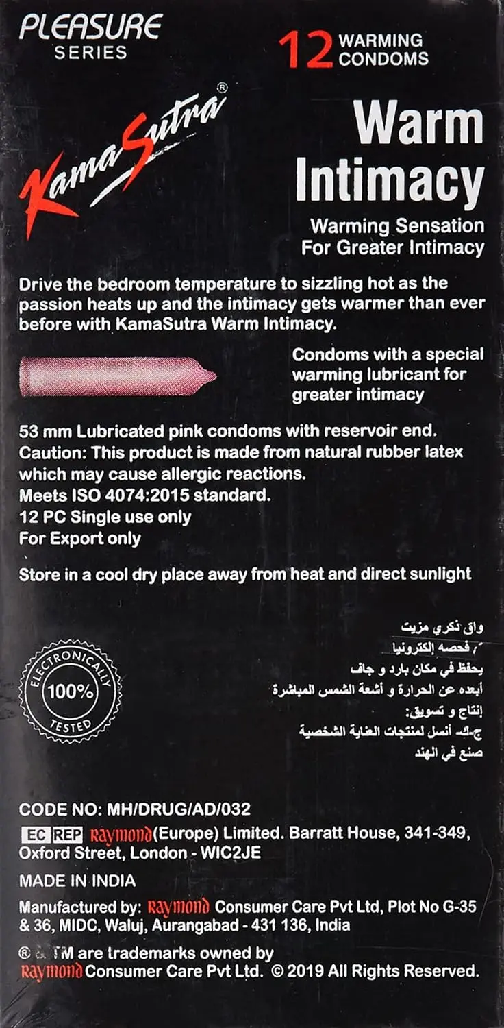 Looking to intensify your pleasure and connection? KAMA SUTRA Warm Intimacy Condoms are designed with double lubrication and stimulating textures to bring you and your partner closer and amplify your intimate moments.