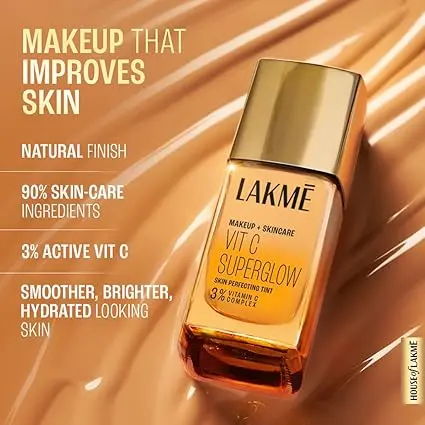 LAKMÉ Natural Makeup For All Skin Type+Skincare Vitc Superglow Skin Perfecting Liquid Medium Coverage Tint Cool Ivory C100 25Ml 1 Count