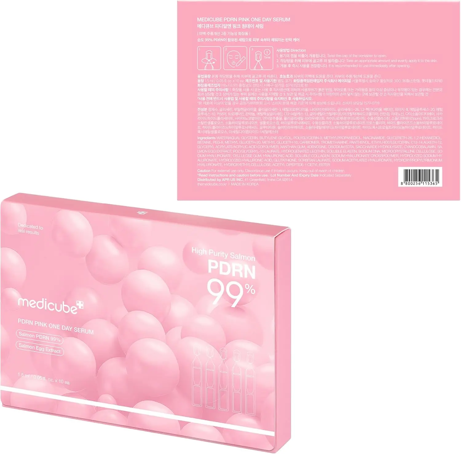 medicube Salmon DNA PDRN Pink One Day Serum | 99% Salmon DNA PDRN Intensive Ampoule, Collagen, Glutathione, Hyaluronic Acid - Improves skin radiance | Korean skincare 0.05 fl.oz x 10ea