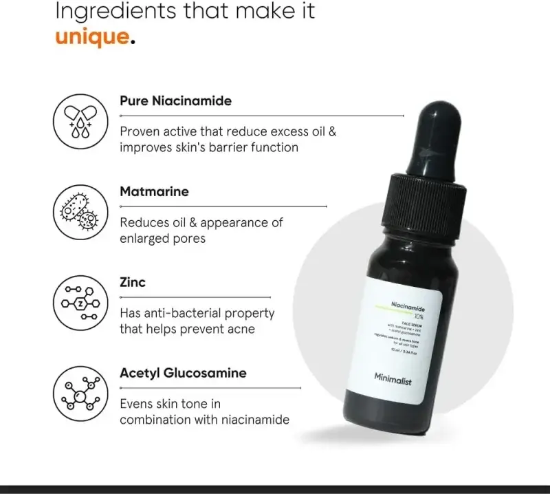 Tired of persistent acne marks, blemishes, and oily skin? Our 10% Niacinamide Face Serum is your powerful ally for a clearer, balanced complexion. Clinically proven to reduce acne marks and dark spots, this serum works to prevent future breakouts and achieve an even skin tone, giving you the confidence of healthy, blemish-free skin.