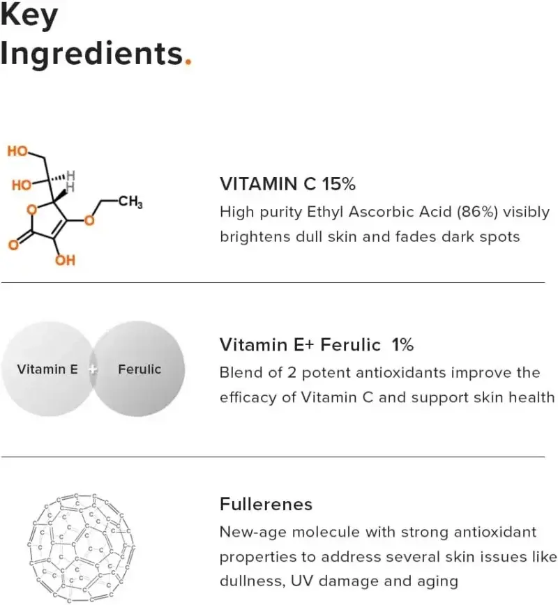 This powerful serum is supercharged with Vitamin E and Ferulic Acid, potent antioxidants that not only stabilize the formula but also amplify its brightening and anti-aging effects. It also features advanced fullerenes to further combat visible signs of aging. Achieve a more even skin tone and a youthful radiance with this advanced formulation, available at the best prices.