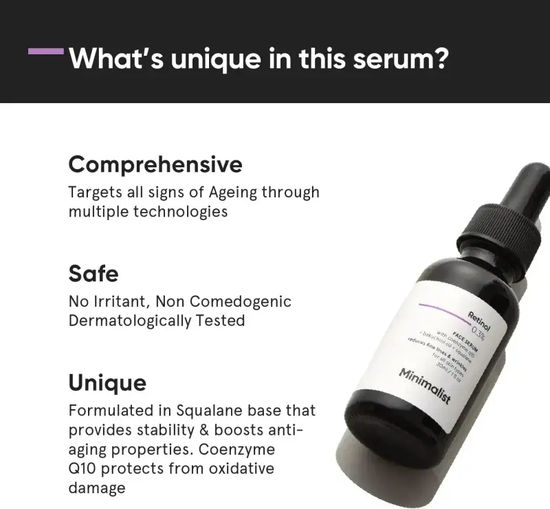 Infused with pure Retinol and powerful antioxidants like Coenzyme Q10 and Vitamin E, this serum not only fights signs of aging but also nourishes and repairs your skin. The unique squalane base ensures stability and effectiveness, delivering results you can see and feel. It’s the best way to invest in your skin’s future at the best prices available.