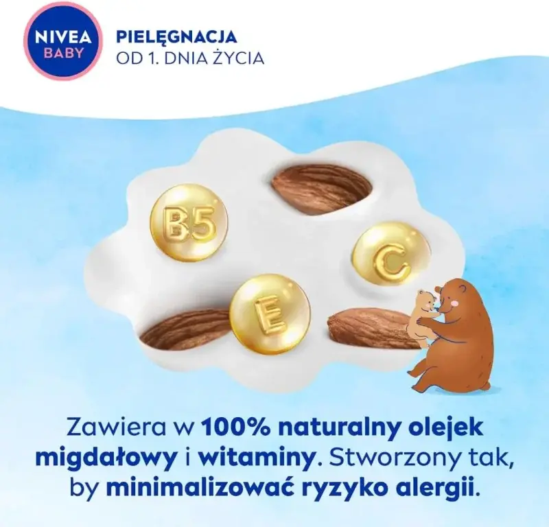 Enriched with 100% natural almond oil and essential vitamins B5, C, and E, this cream deeply nourishes and strengthens your baby’s skin barrier. It’s dermatologically tested and recommended for sensitive baby and children’s skin, minimising allergy risks for complete peace of mind.