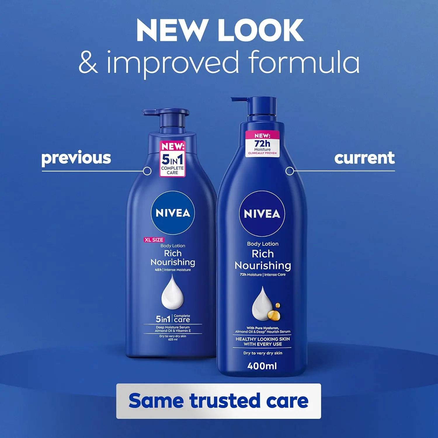 Dealing with persistently dry to very dry skin? This NIVEA Rich Nourishing Body Lotion is your ultimate solution, offering 5in1 complete care for up to 72 hours of intense moisture. It transforms rough, uncomfortable skin into a sensationally soft and healthy-looking complexion.