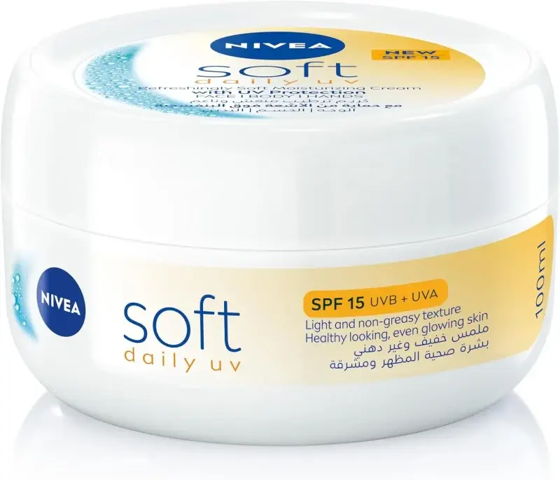 Worried about daily sun exposure damaging your skin? Protect and nourish with NIVEA Soft Daily UV Protection Cream. This lightweight formula provides essential SPF15 protection against harmful UV rays while delivering refreshing hydration. Say goodbye to dull, dry skin and hello to a fresh, glowing complexion that’s shielded from the sun.