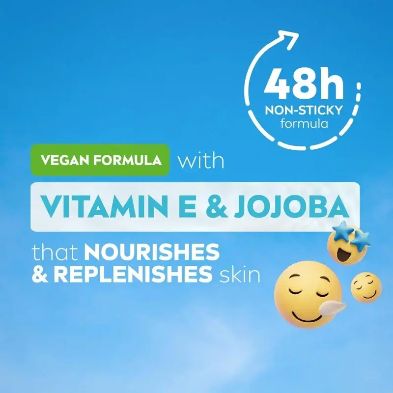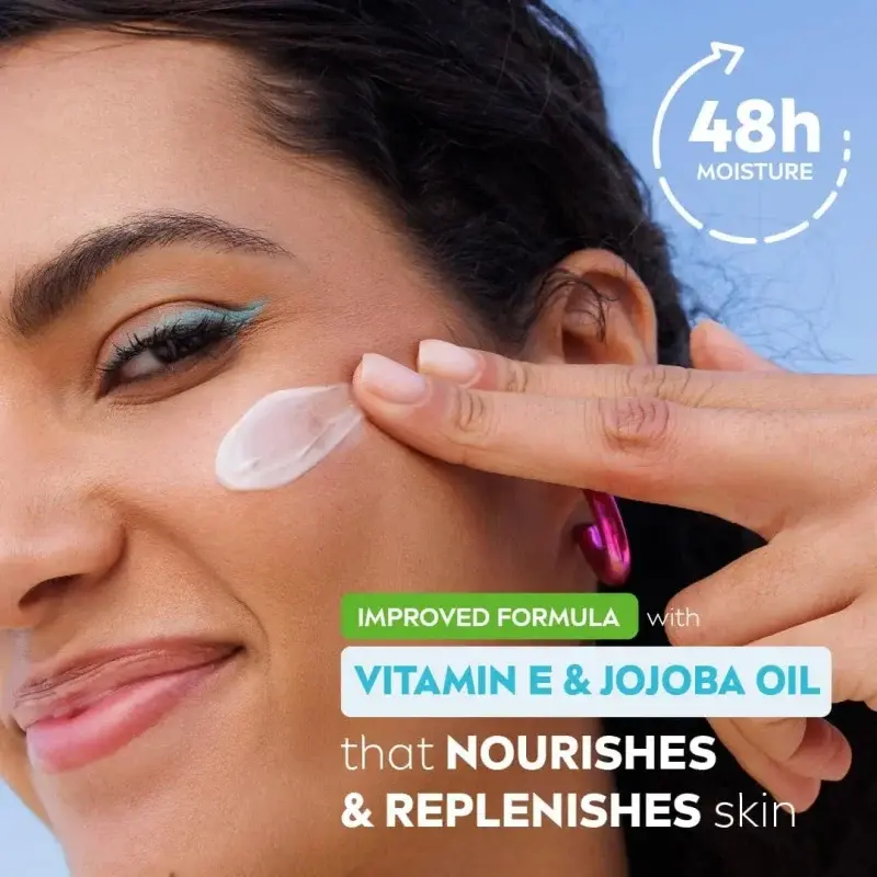 Featuring a light formula enriched with Vitamin E and Jojoba Oil, it absorbs quickly without leaving a greasy feel. This versatile cream is ideal for your face, hands, and body, making it a convenient all-in-one moisturiser. The handy tube size is perfect for taking your skincare on the go.