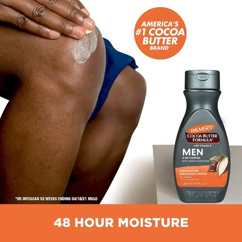 Men, are you tired of dealing with rough, dry skin that just won’t quit? Palmer’s Cocoa Butter Formula for Men 3-in-1 Lotion is designed to tackle these issues head-on. This powerful lotion combats rough, dry skin on your body and face, and even acts as a soothing after-shave treatment, leaving your skin feeling smooth and revitalized.