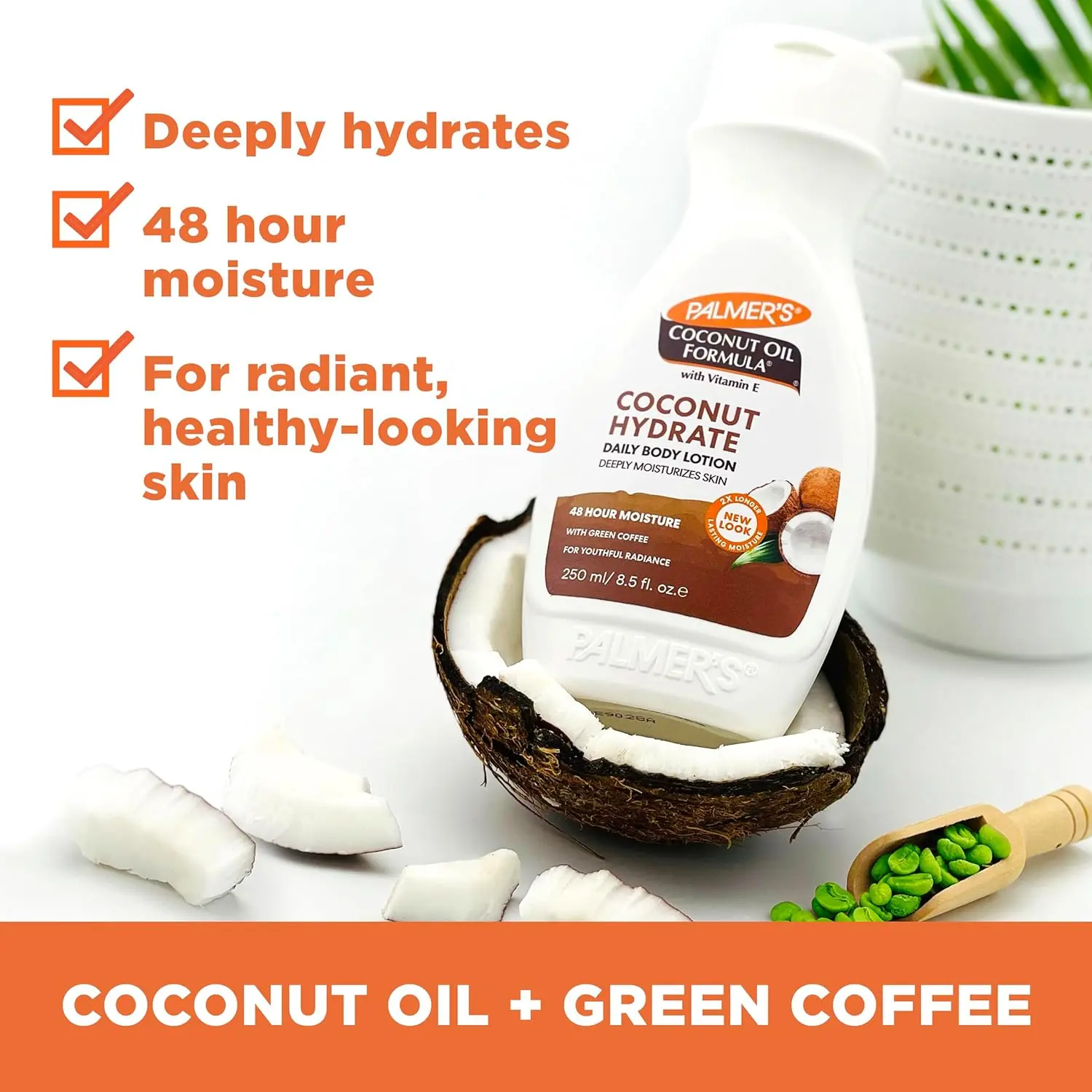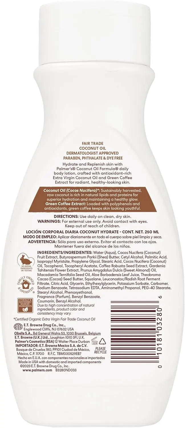 Does your skin feel dull and lacklustre, craving deep hydration? Palmer’s Coconut Oil Formula Hydrate Daily Body Lotion is here to replenish and revitalize. This luxurious lotion is infused with antioxidant-rich Coconut Oil and Green Coffee Extract, working together to bring out your skin’s natural radiance and healthy glow.