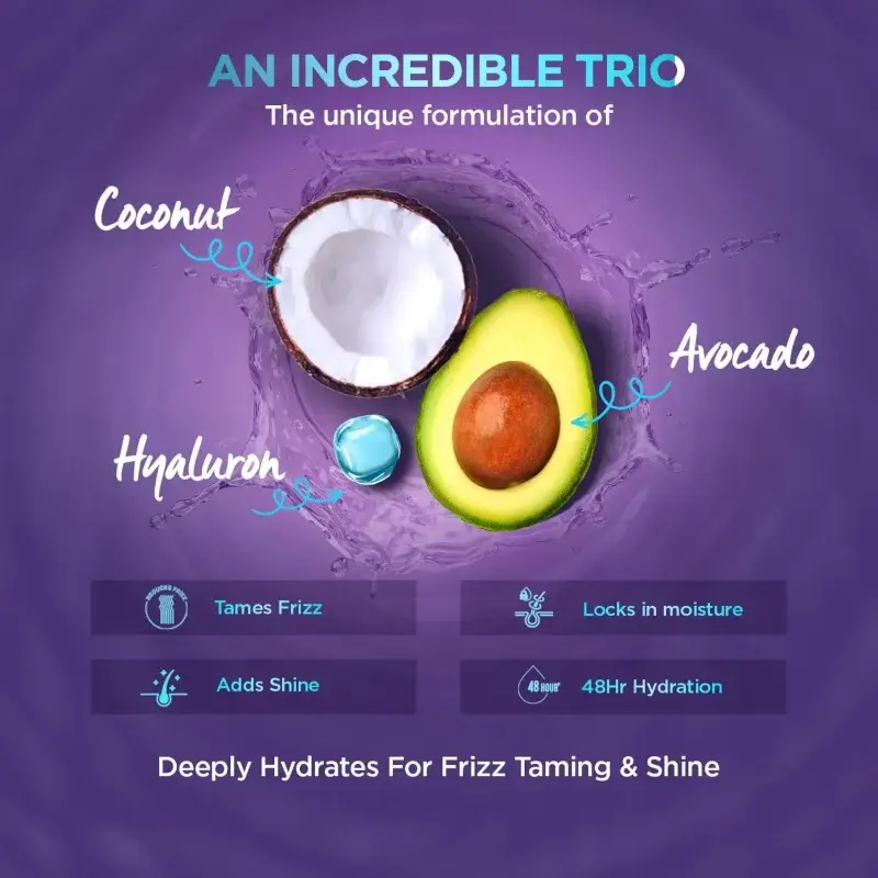 This unique formulation is specially crafted with Coconut, Avocado, and Hyaluron to provide intense hydration that lasts. Keep your curls moisturized and fresh for up to 48 hours, ensuring they stay bouncy and beautiful, even on the second day after washing.