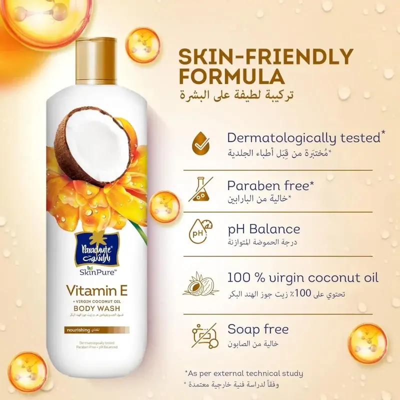 Want to cleanse your skin while keeping it soft and balanced? Experience the gentle touch of PARACHUTE SKIN PURE BODY WASH VITAMIN E.