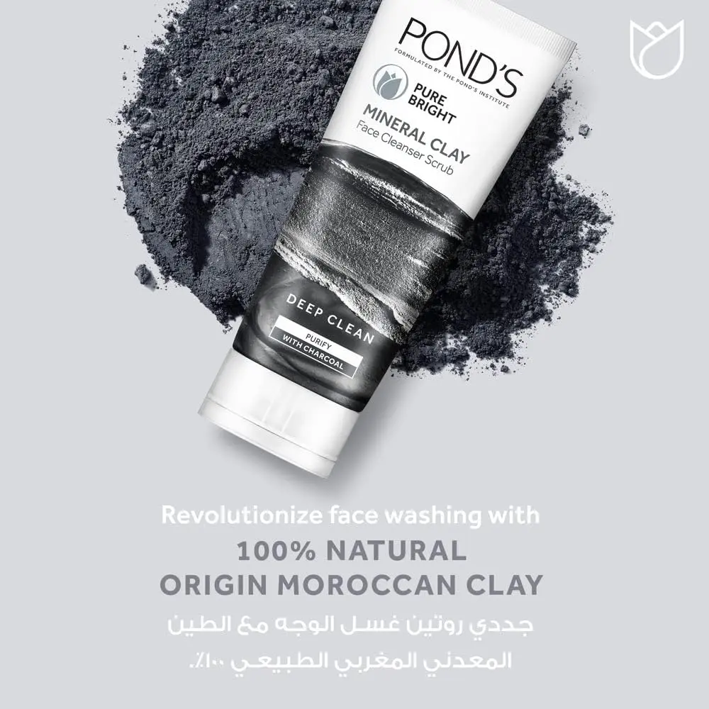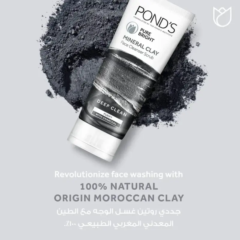 Tired of dull, polluted skin that feels less than fresh? Unveil your purest glow with Pond’s Pure Bright Mineral Clay Face Cleanser Scrub. This purifying cleanser is formulated with 100% natural origin Moroccan Clay and activated charcoal to deeply cleanse and detoxify your skin, lifting away dirt, dust, and hidden pollutants embedded deep within your pores.