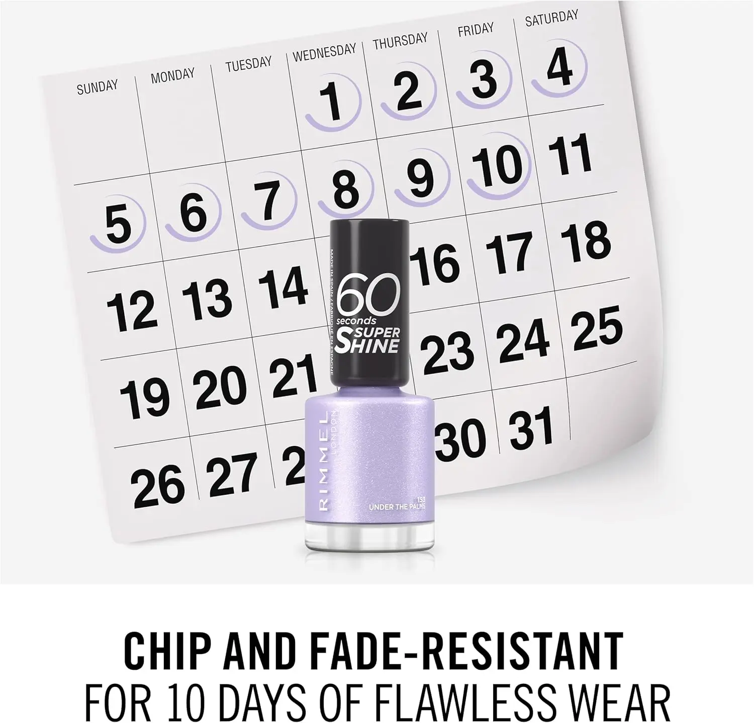 Experience the convenience of a polish that dries in just 60 seconds, perfect for your busy lifestyle. Its chip and fade-resistant formula ensures flawless wear for up to 10 days. The one-step, precise application locks in superior colour with a single downward stroke, saving you time and effort.