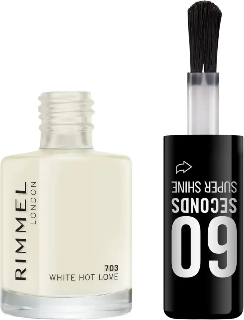 Rimmel London Colour Your Way 60 Seconds Super Shine Nail Polish - Quick Drying - Resists Chips & Fading, Lasts Up To 10 Days - Precise Application In One Stroke - 703 White Hot Love, 8 ml