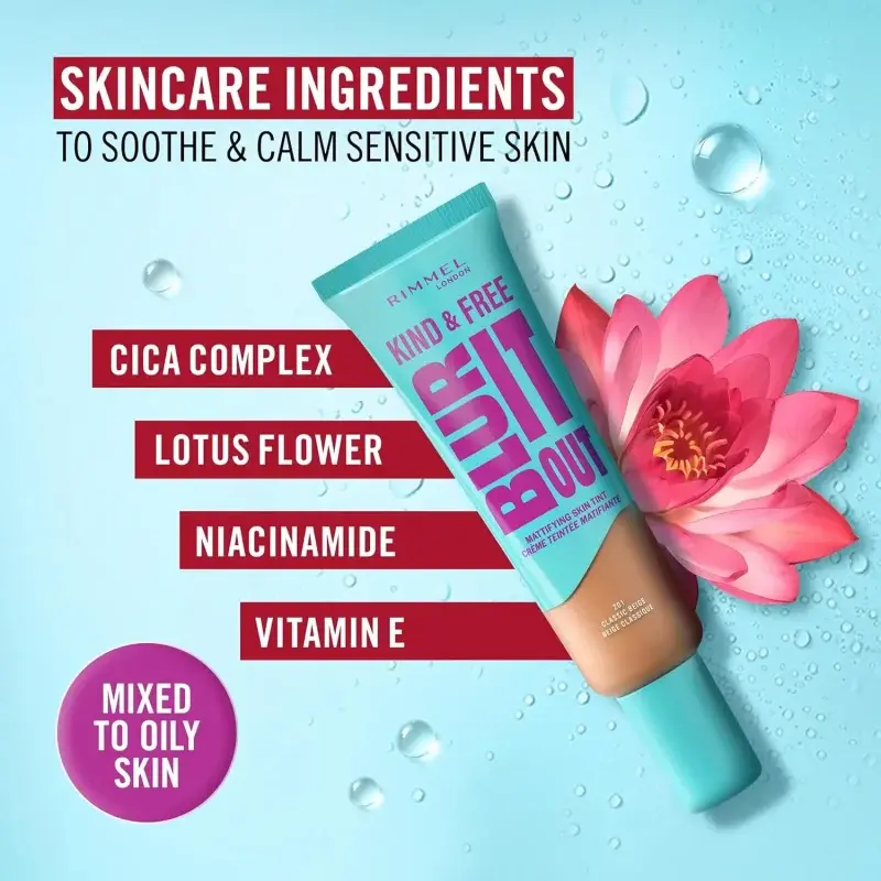 Achieve a flawless, shine-free complexion with the Rimmel London Kind & Free BLUR IT OUT Mattifying Skin Tint in Golden Ivory. If you struggle with oily skin or visible pores, this lightweight skin tint is your secret weapon for a smooth, matte finish that lasts all day.